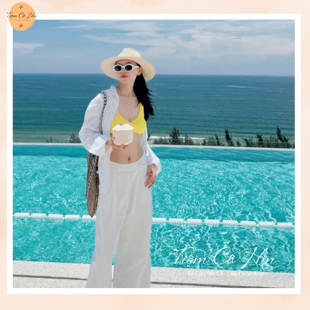 - Mũ cói có thể kết hợp với nhiều trang phục, từ cá tính đến phong cách bánh bèo nữ tính, đặc biệt là trang phục du lịch và đi biển.